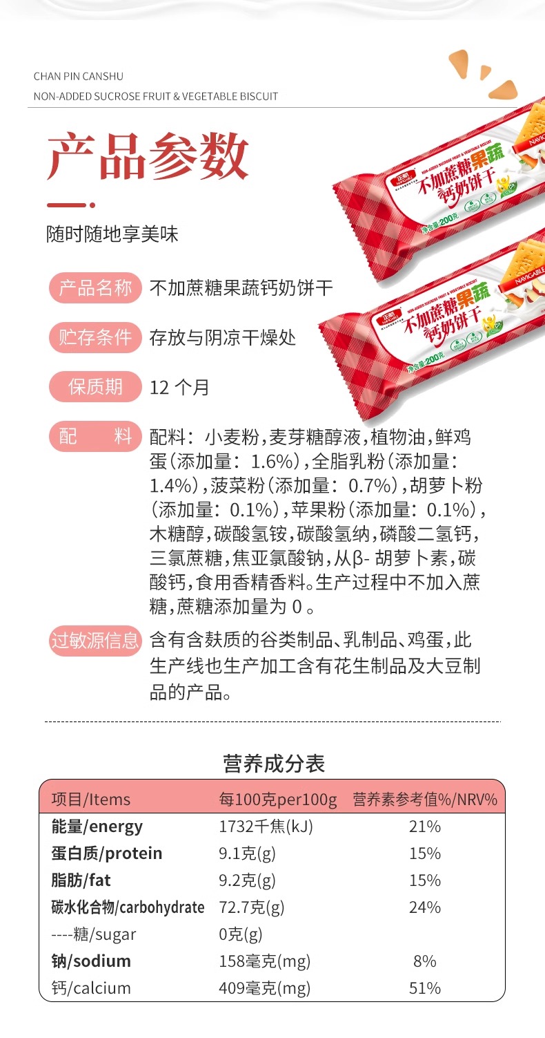 正航200g不加蔗糖果蔬钙奶饼干高钙冲泡代餐食品组合装整箱包邮