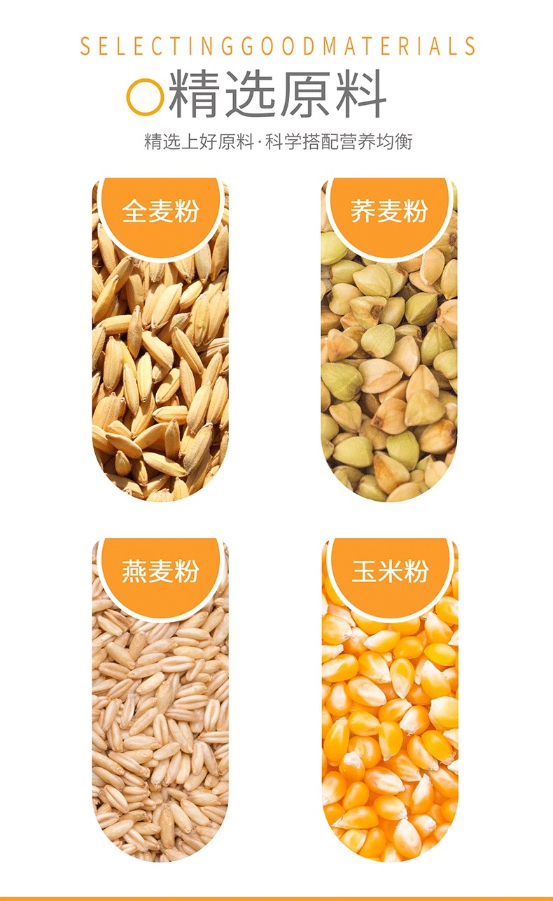 全麦粉,植物油,荞麦粉,燕麦粉,玉米粉,全脂乳粉等,详见包装