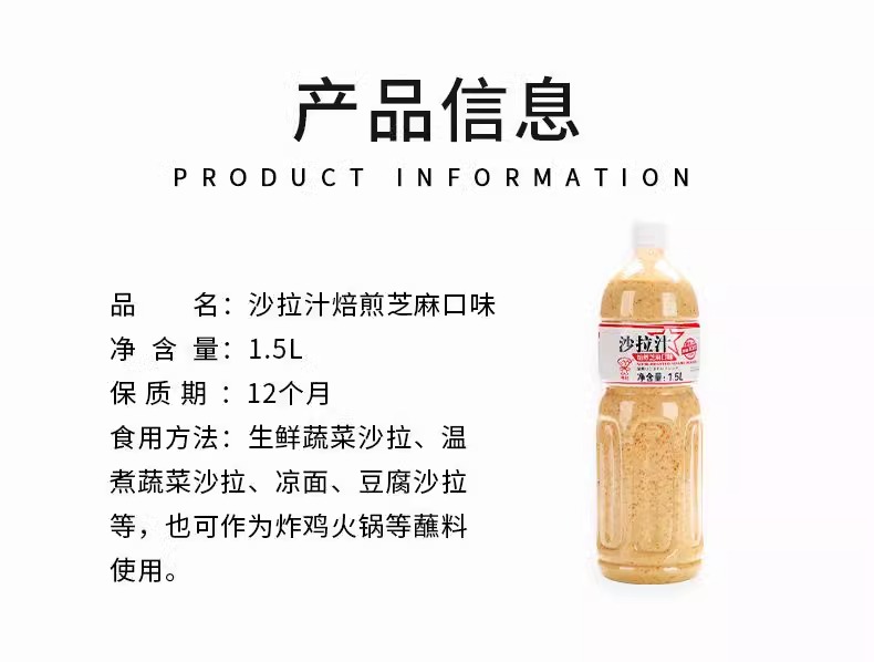 休比焙煎芝麻沙拉1.5L专用蔬菜水果沙拉餐饮火锅蘸料