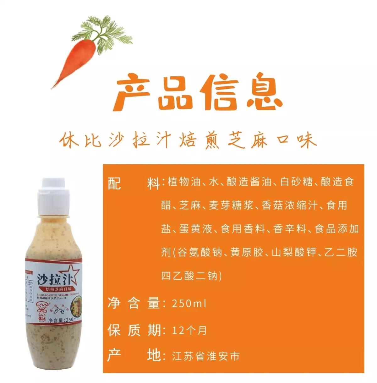 休比蛋黄味沙拉汁220g瓶装蔬菜水果寿司牛扒面包三明治汉堡卷饼汁