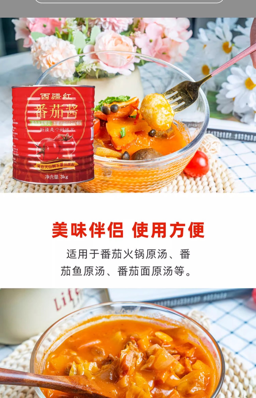 西疆红番茄酱3kg大罐装手抓饼披萨原料浓缩番茄调味酱料商用整箱