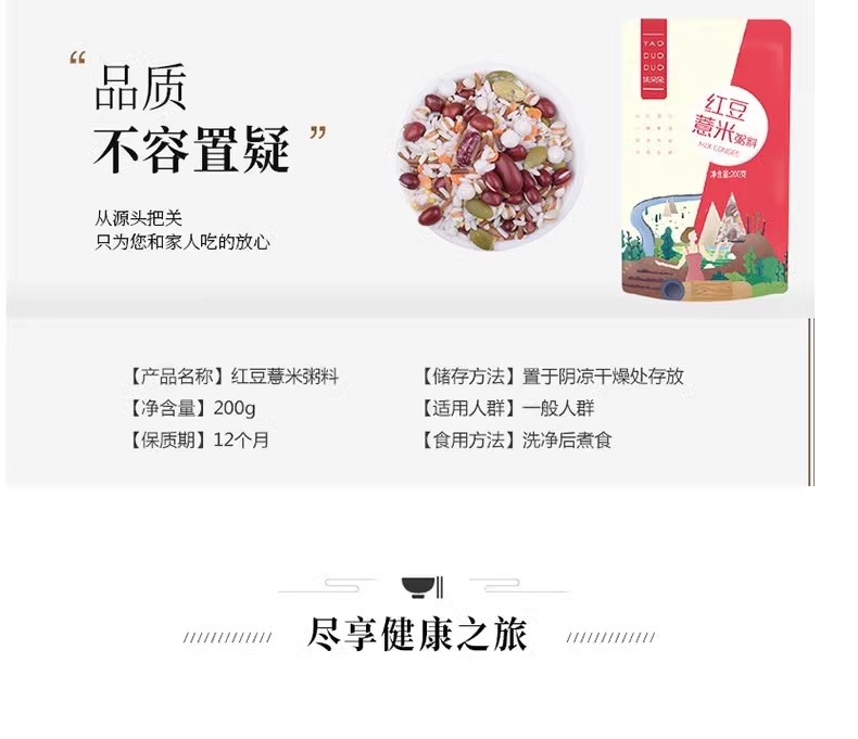姚朵朵红豆薏米粥200g*3赤小豆五谷杂粮粗粮组合粥料小包装