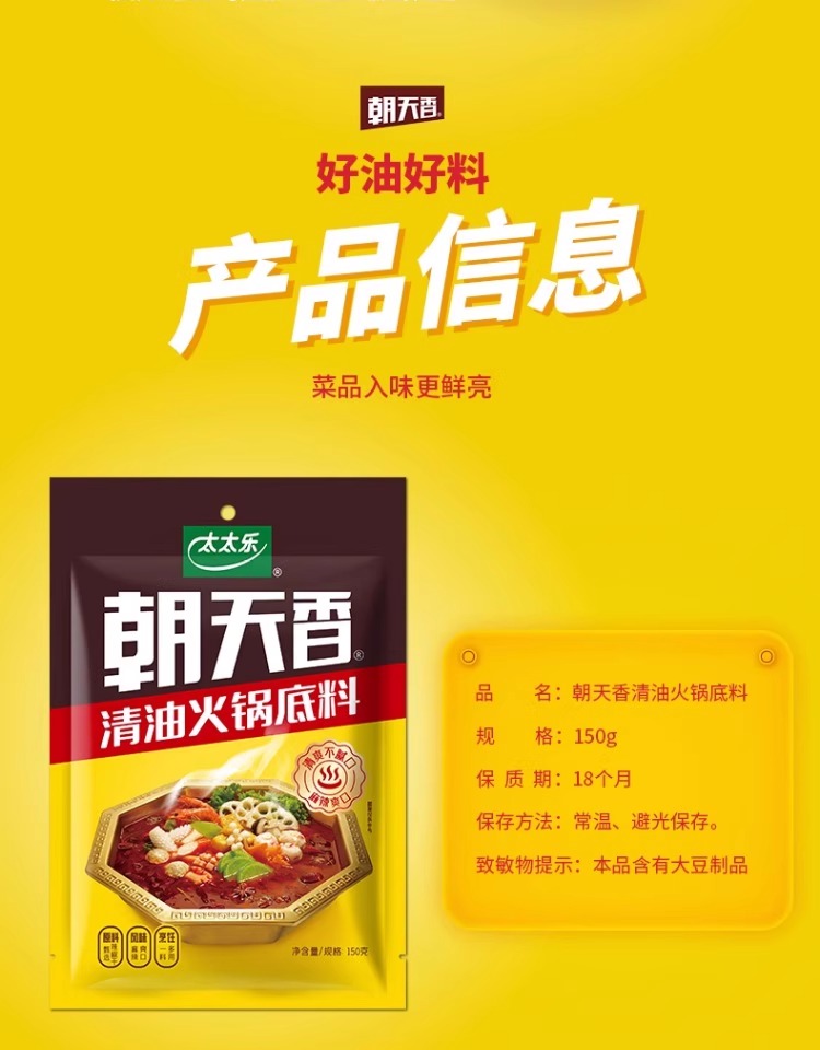 朝天香太太乐牛油清油火锅底料四川特产150g家用麻辣烫串串香冒菜