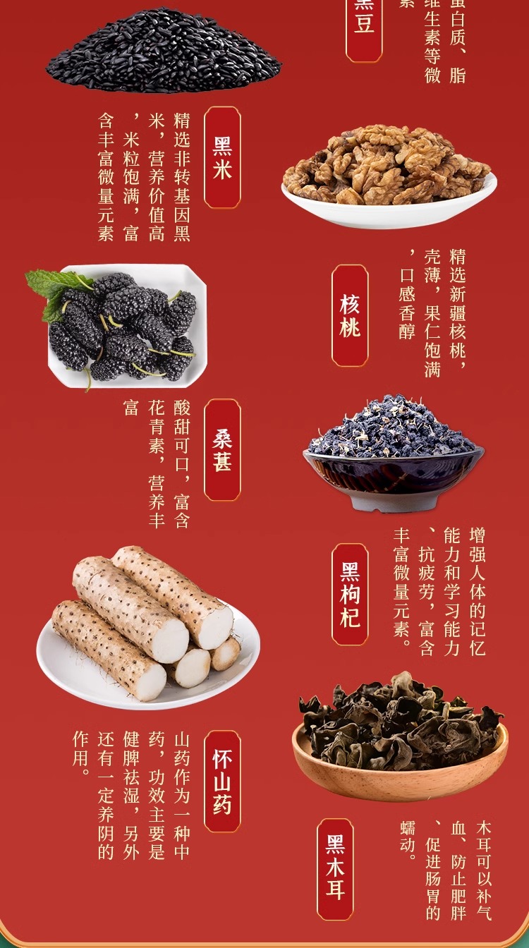 黑芝麻核桃黑豆粉 黑桑葚黑枸杞黑木耳 营养早餐代餐