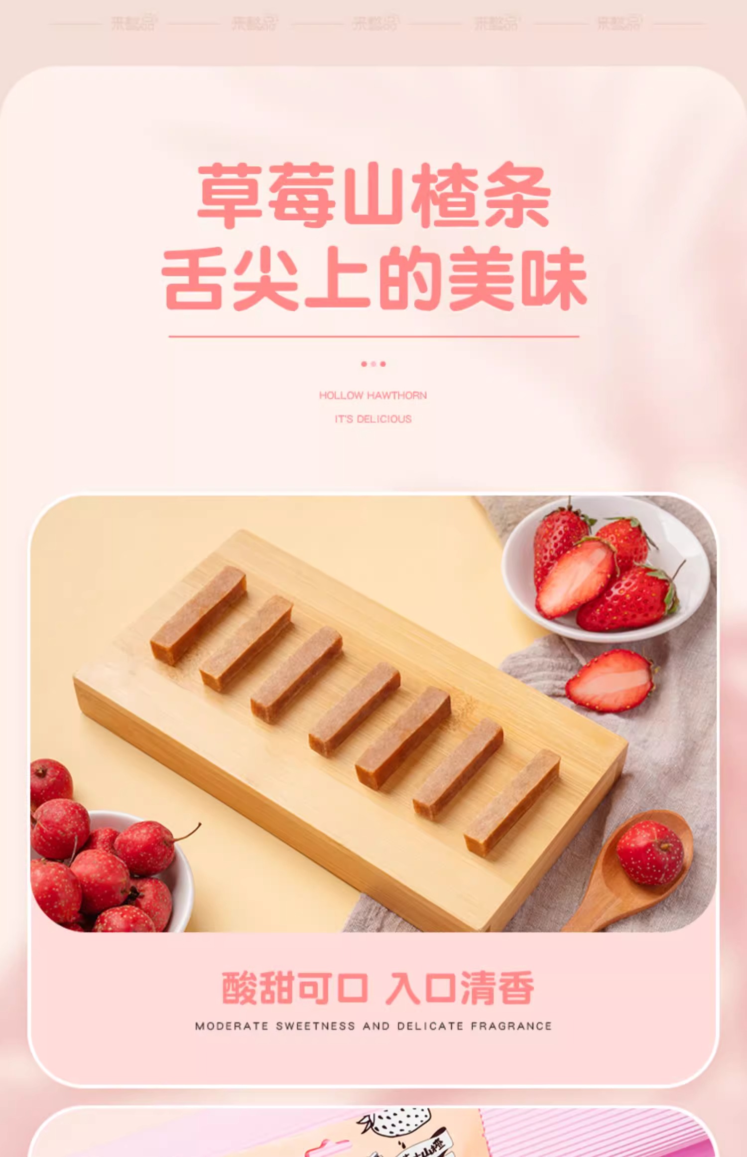 来懿品草莓山楂条糕片山楂干休闲零食果丹皮山东特产150g
