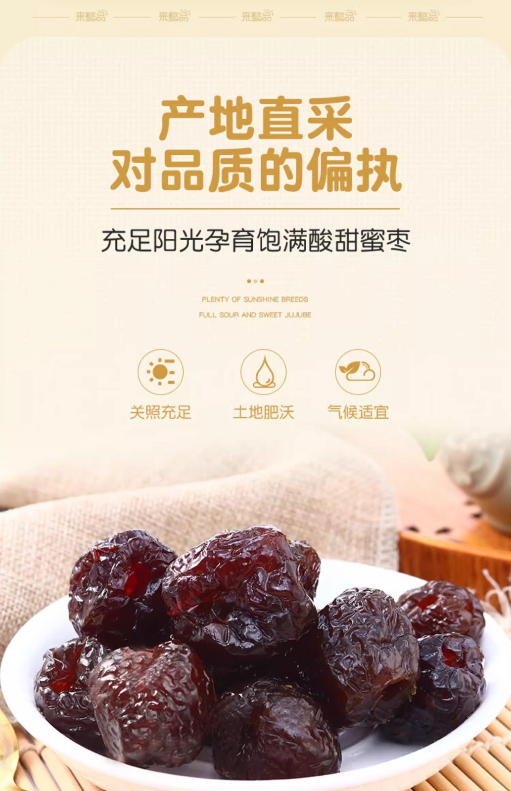来懿品酸小枣休闲零食果脯蜜饯蜜枣干小包装山东特产无核 150g