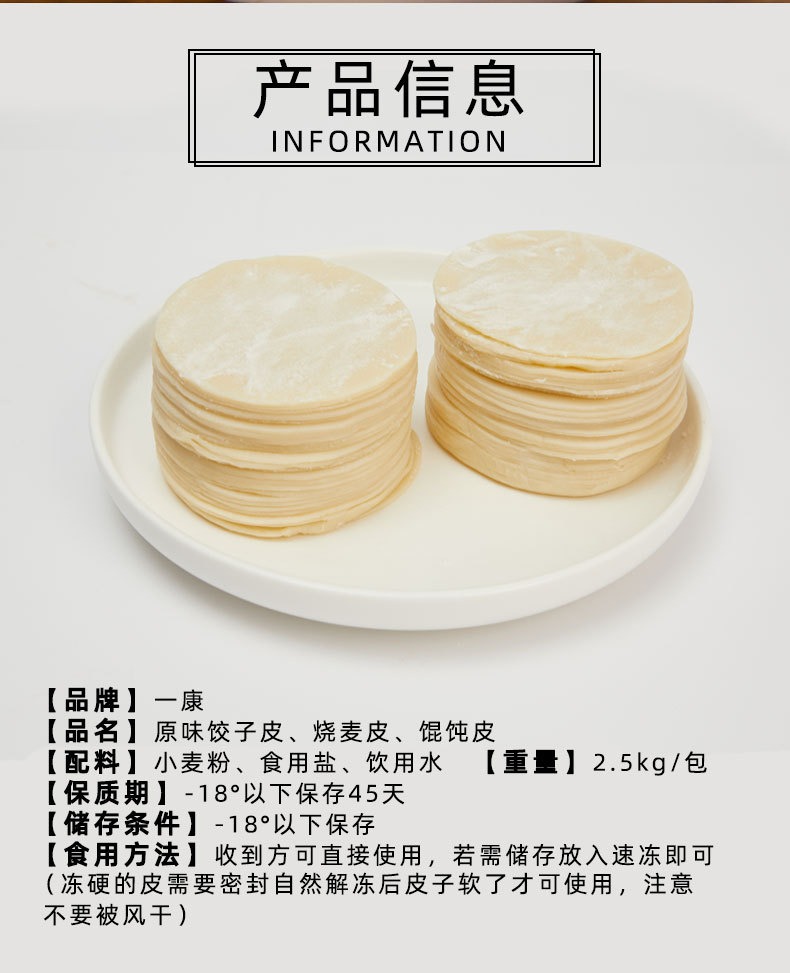 新鲜饺子皮超薄煎蒸水饺皮 2500(g)原味儿童手工辅食馄饨烧麦皮厂家直销
