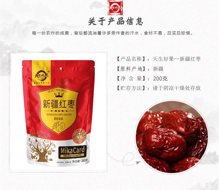 天生好果新疆灰枣200g袋装即食免洗红枣煲汤煮粥休闲