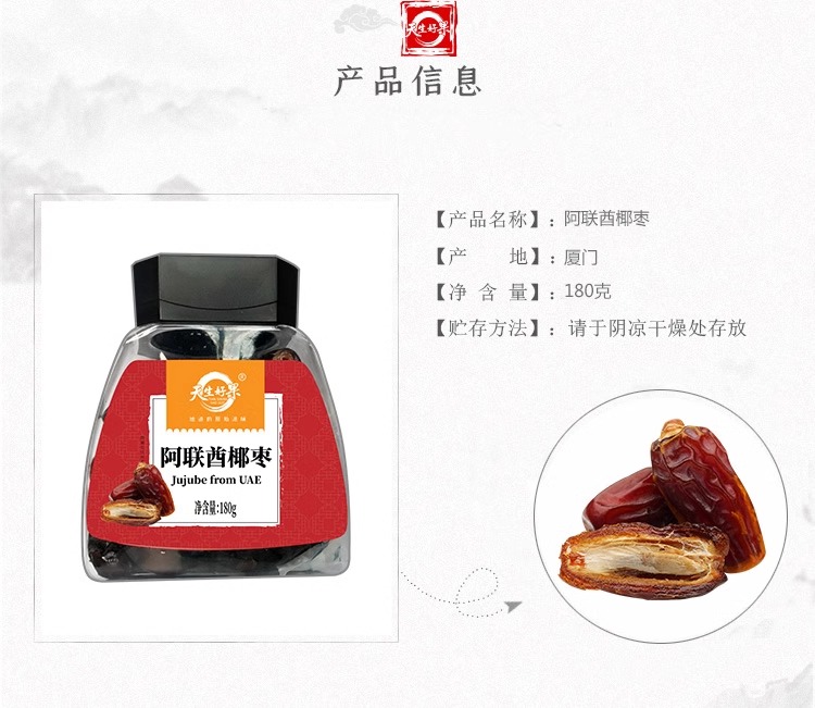 天生好果休闲零食果干蜜饯罐装阿联酋椰枣180克
