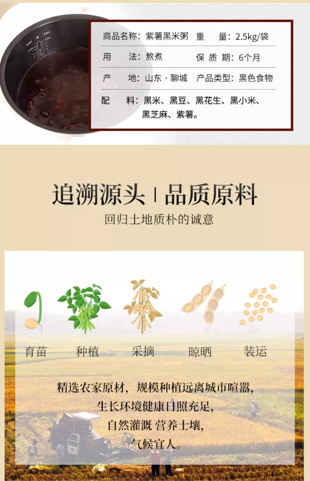 紫薯黑米粥5斤 黑五类谷杂粮农家黑豆黑芝麻早代餐原材料米糊组合