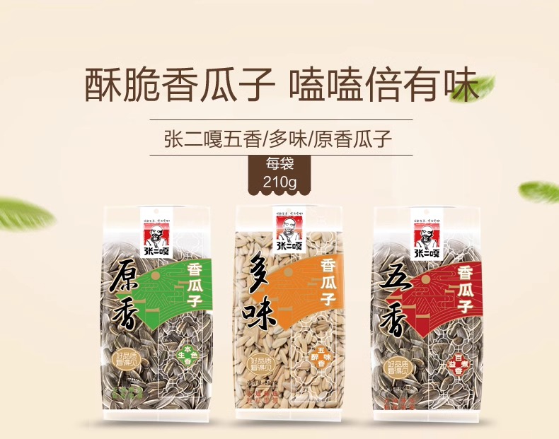 张二嘎210g 原味五香多味瓜子新货葵花籽坚果零食炒货