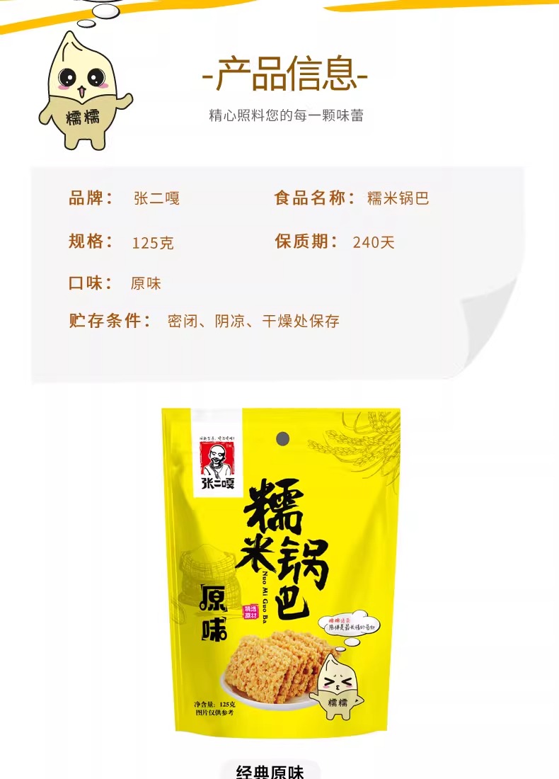 张二嘎125g糯米锅巴酥脆休闲小零食 安徽特产小包装老