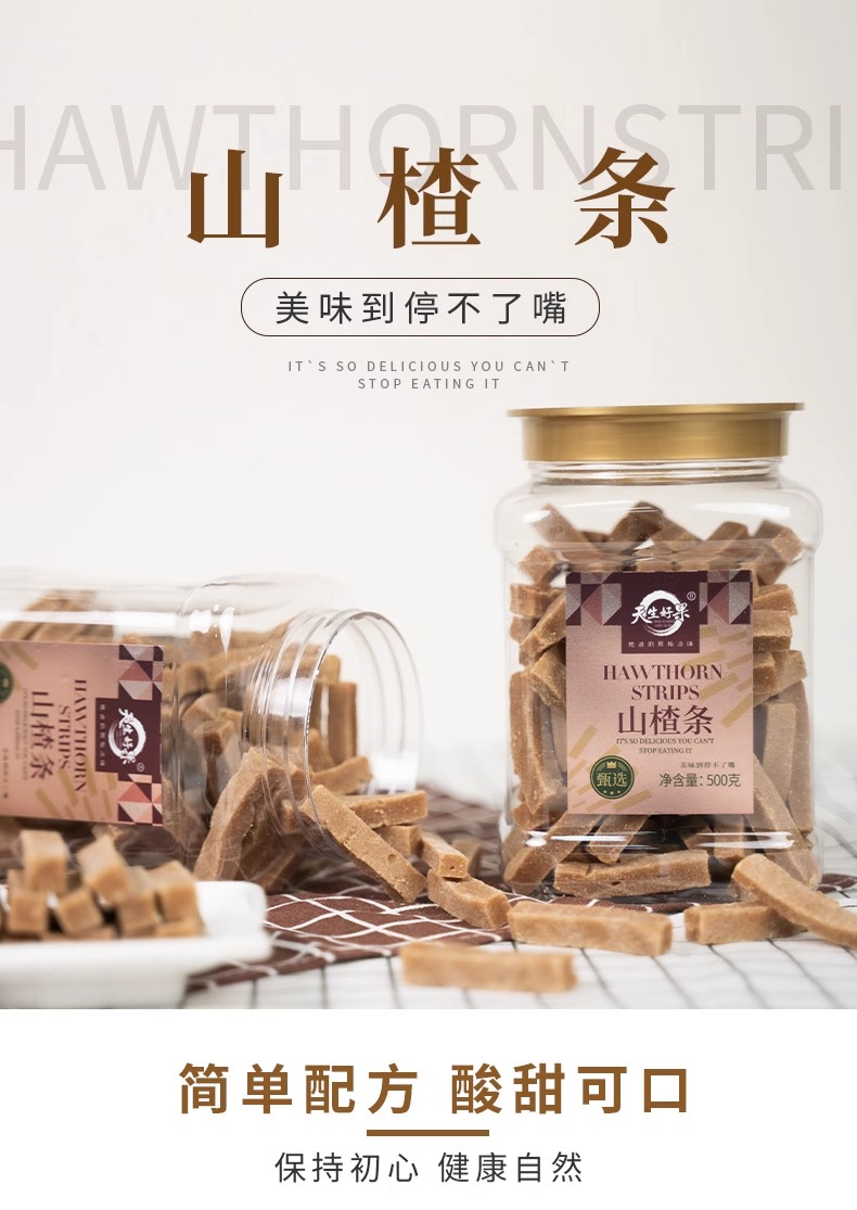 天生好果山楂条500g手握方瓶蜜饯果干童年零食小吃休闲食品烘焙