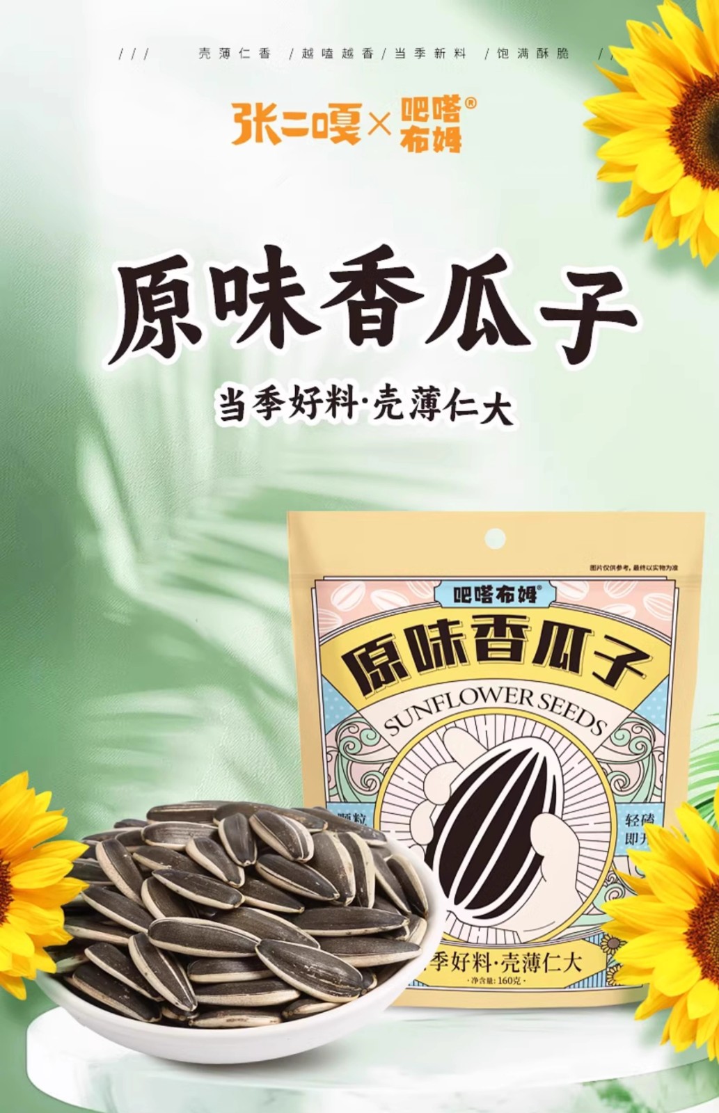 香瓜子原味炒货葵花籽160g/袋办公室零食袋装坚果小吃