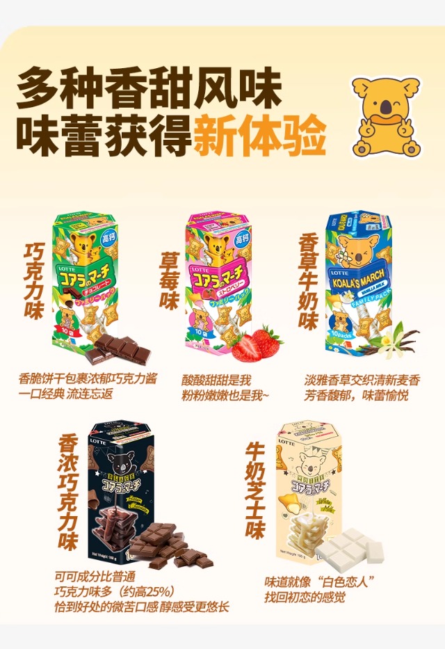 圣诞进口零食乐天小熊饼干考拉熊巧克力夹心饼干儿童网红饼干195g