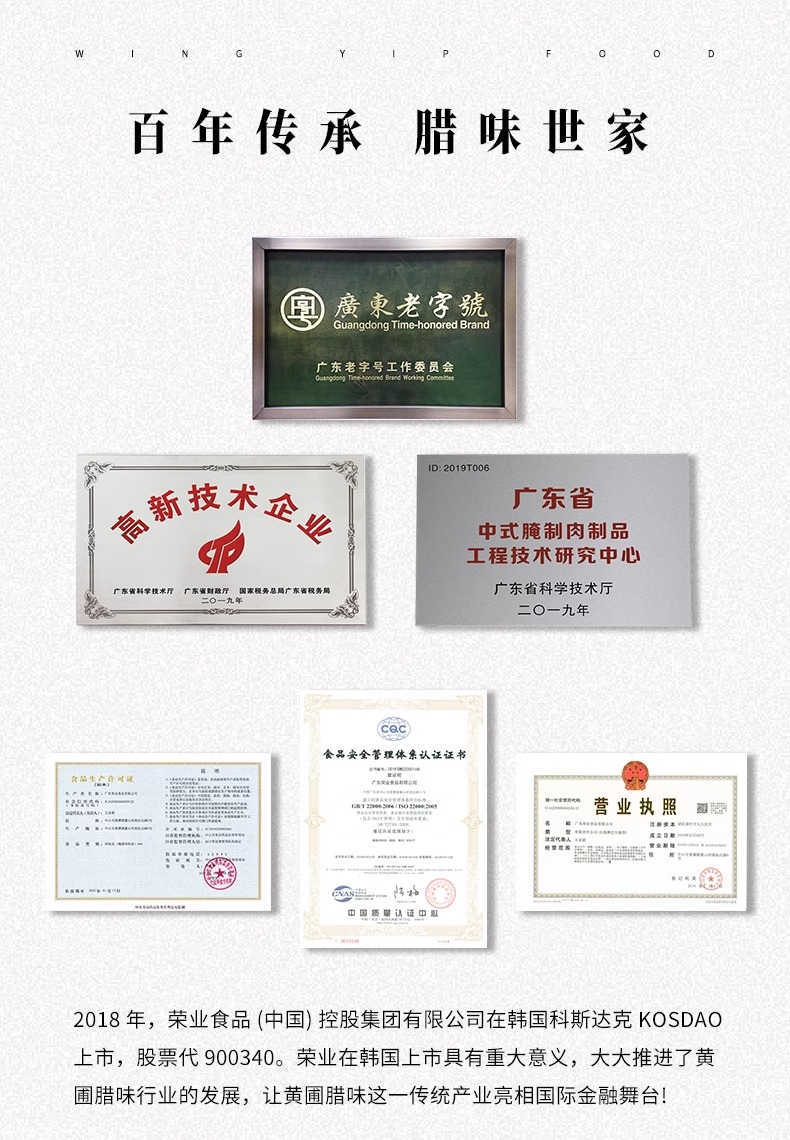 荣业广式腊肠鸿福7分瘦250g广东正宗黄圃腊香肠广味年货送礼特产