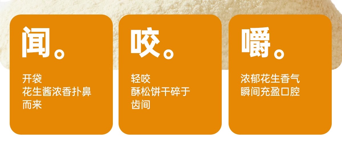 卖点:精选优质花生,精细研磨每一块夹心饼干都充满了纯正花生风味
