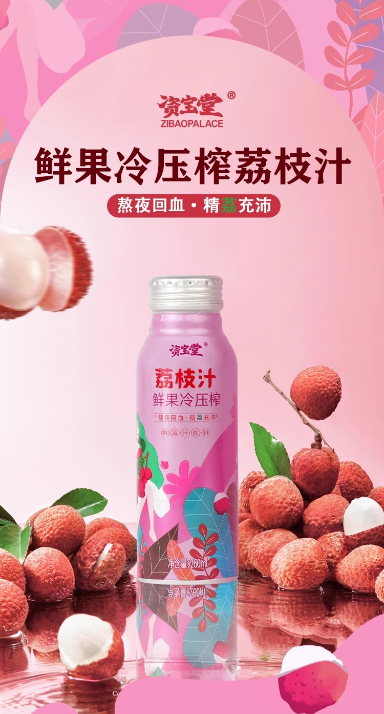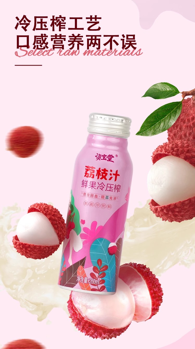 资宝堂冷压榨荔枝汁饮料果汁含量≥70%果蔬汁果汁饮料