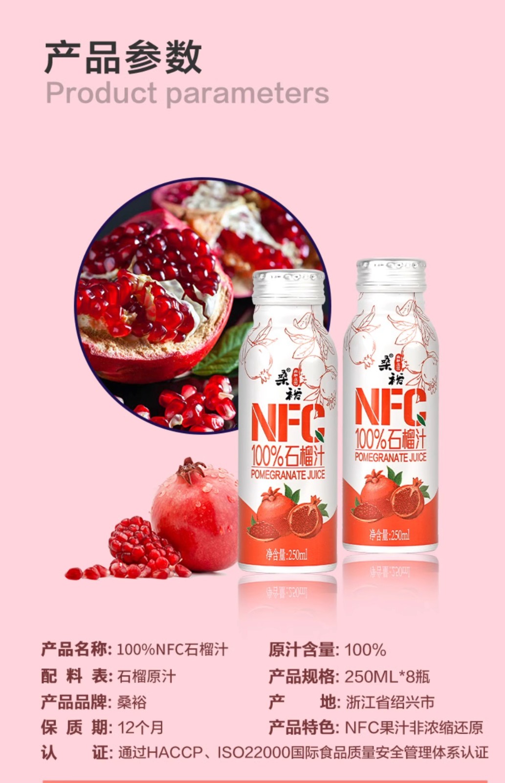 桑裕鲜果冷压榨NFC石榴汁纯100%石榴原汁儿童孕妇营养