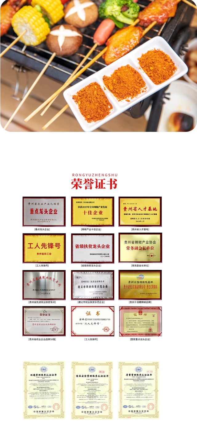 贵三红孜然味蘸料2g*40包装干碟贵州辣椒面烧烤烙锅串