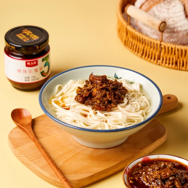 贵三红辣三娘杏鲍菇香菇木耳豆腐干拌饭拌面辣椒酱下饭菜拌饭酱