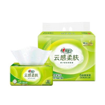 心相印云感立体压花抽纸3层s码100抽*6包
