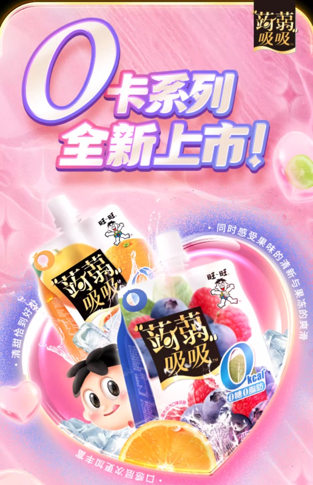 旺旺0卡蒟蒻吸吸果冻120g*6血橙味蓝莓树莓味0糖0脂肪无糖可吸果冻