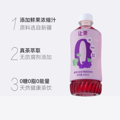 让茶无糖葡萄乌龙果味茶饮料0糖0脂0能量450ml*15瓶整箱装 1件装