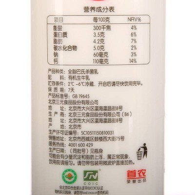三元每日鲜极致有机鲜牛奶 900ml*6瓶 整箱装