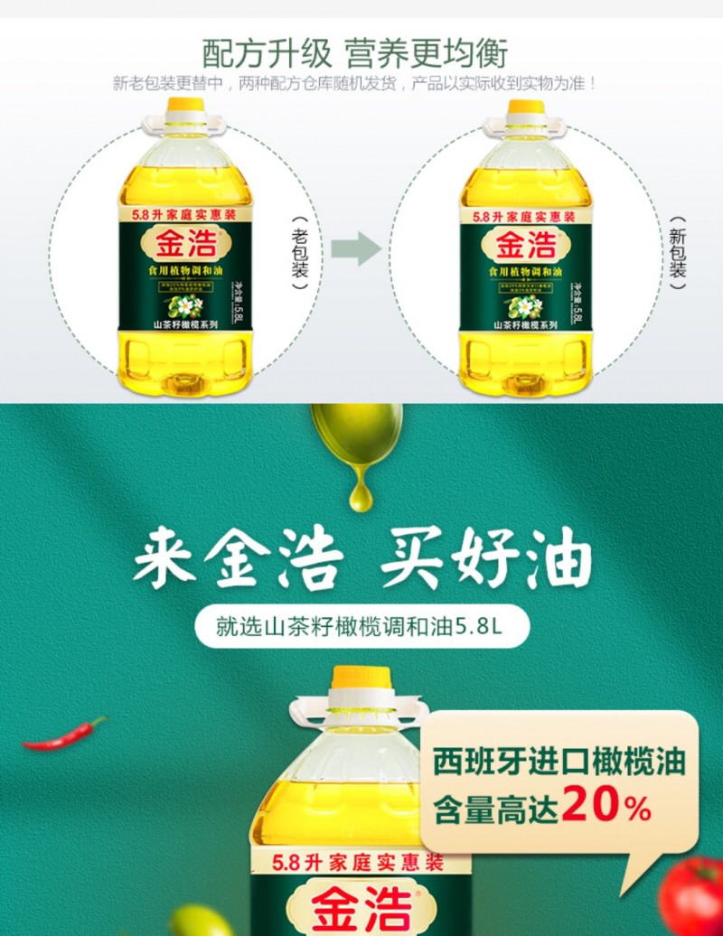 金浩山茶籽橄榄系列添加20%橄榄5.8L/桶