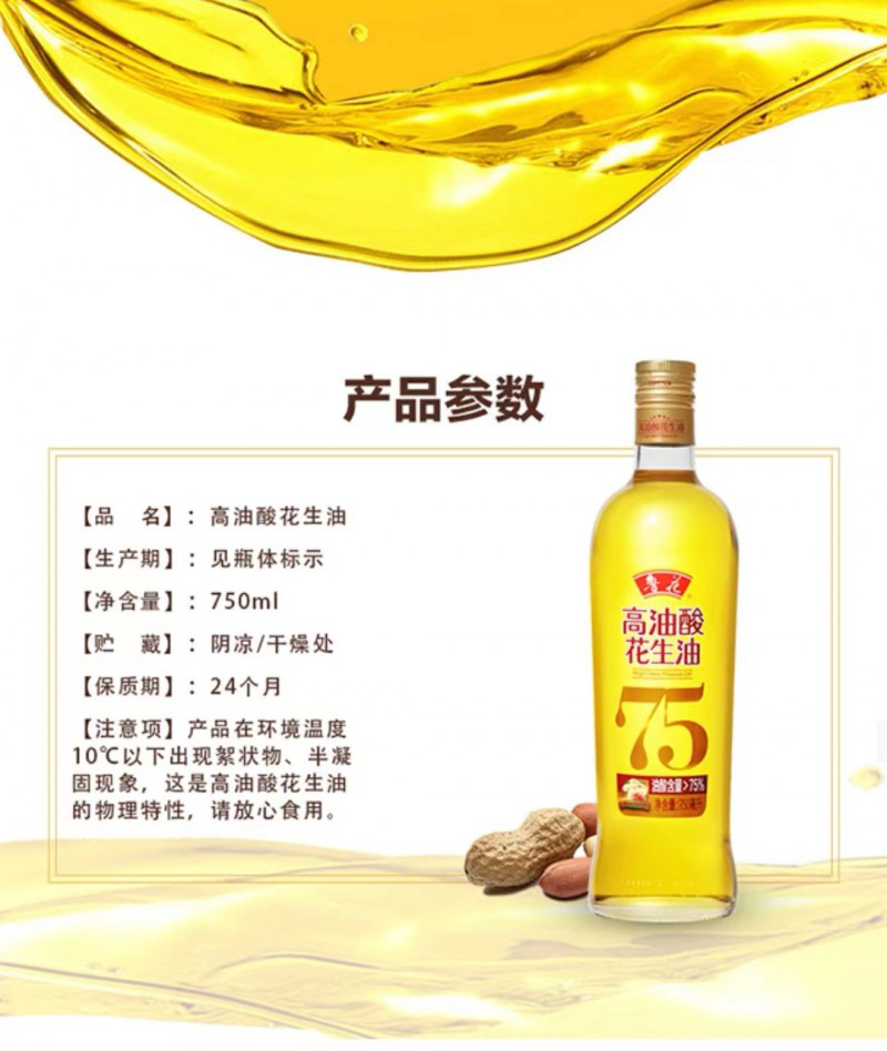 鲁花高油酸花生油5S纯物理压榨去除黄曲霉素750ml*2