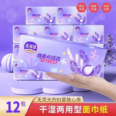 吉多多12包家用纸巾卫生纸薰衣草绵柔抽纸压花干湿两用大号纸抽