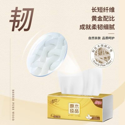 清风原木纯品金装软抽纸3层150抽*3包