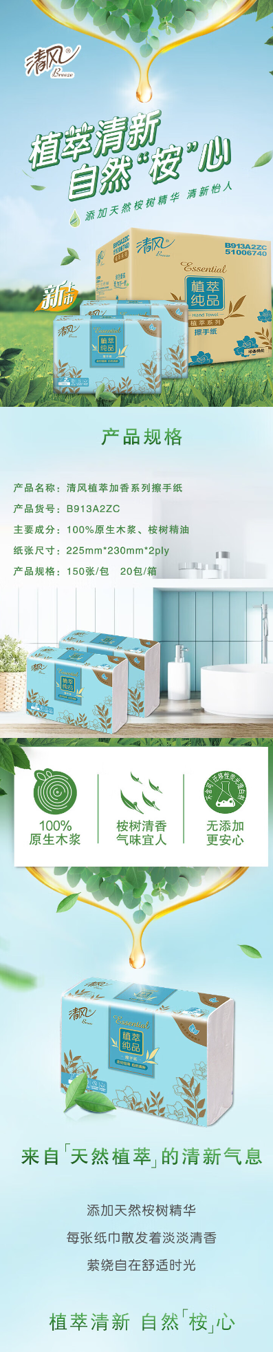 清风抽纸植萃2层DECO压花150抽擦手纸整箱20包