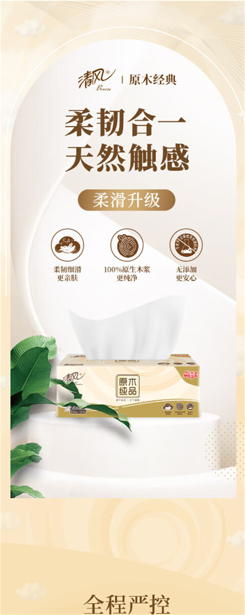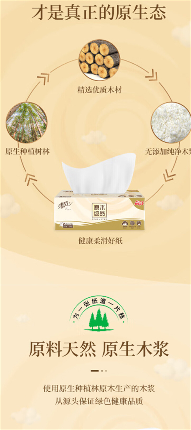 清风抽纸原木纯品3层120抽巾纸