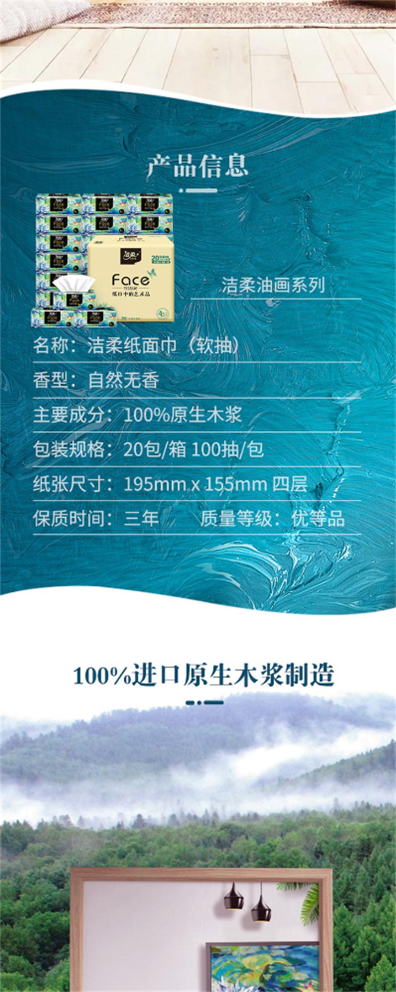 洁柔抽纸加厚4层100抽面巾纸*20包油画Face