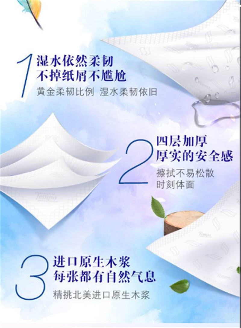 卖点:湿水依然柔韧不掉纸屑不尴尬