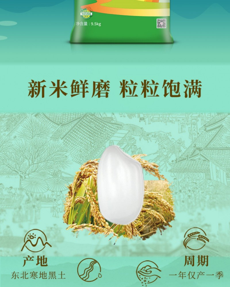 三人行原香稻好吃不贵的高端东北米真空9.5kg/袋