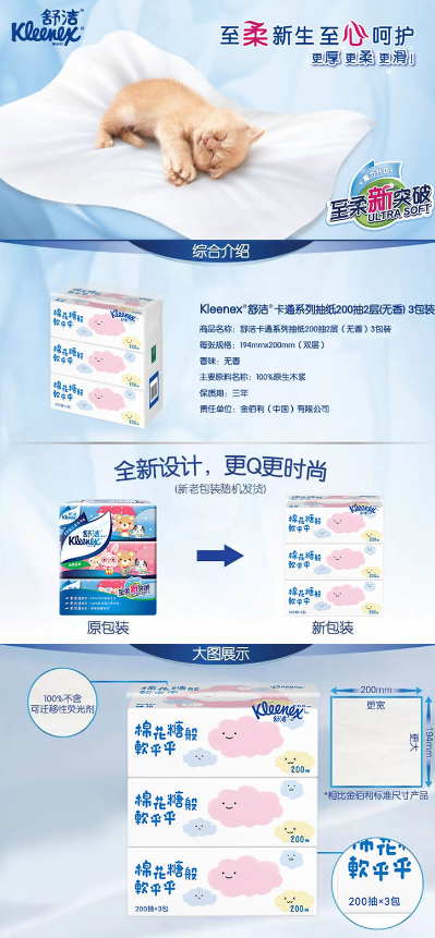 舒洁(Kleenex) 卡通系列抽纸200抽3包装