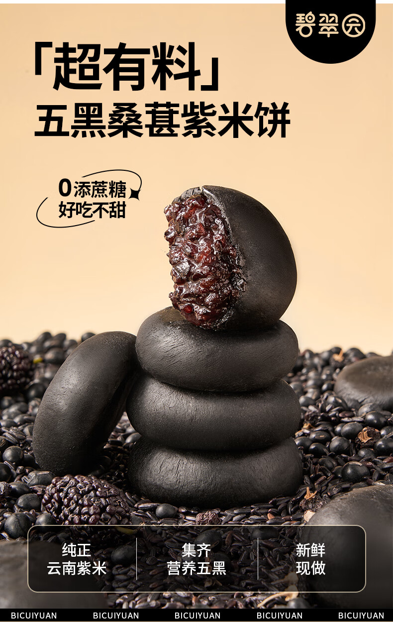 碧翠园五黑桑葚紫米饼低脂0蔗糖早餐面包粗粮代餐500g/箱
