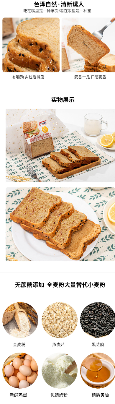 卖点:果蔬吐司无糖全麦