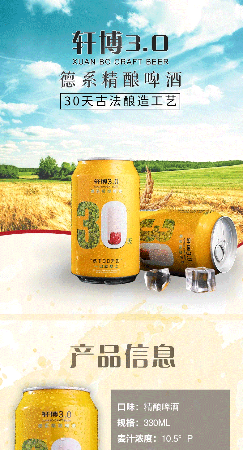 轩博精酿啤酒德系工艺啤酒整箱易拉罐330ml*24听白啤熟啤罐装扎啤