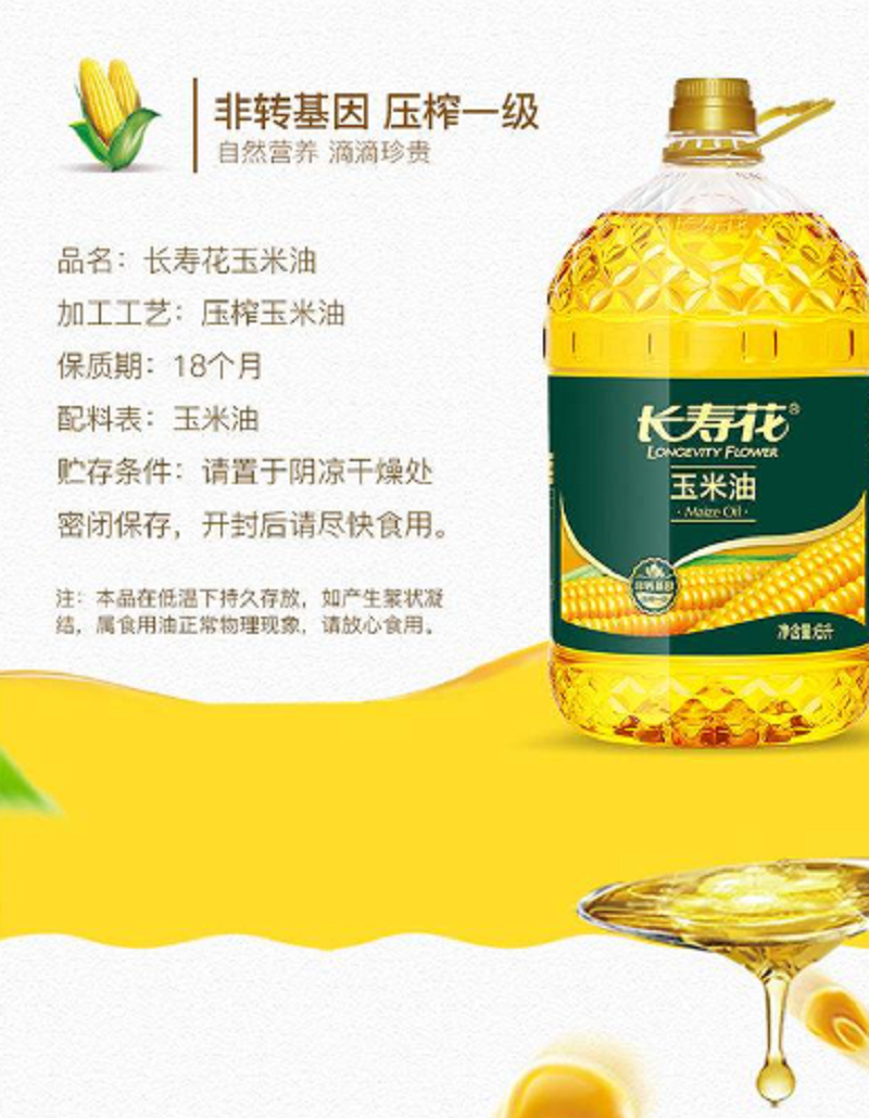 长寿花玉米油粒粒精选压榨一级原香味浓