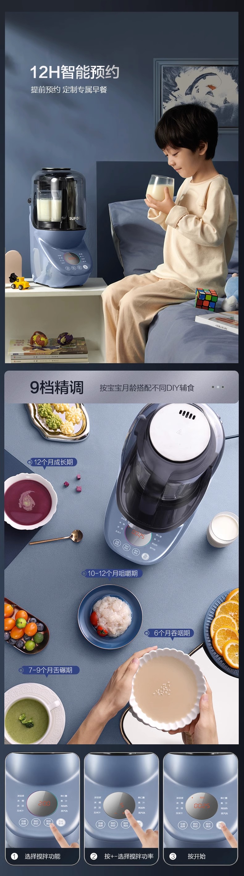 苏泊尔低音可拆洗破壁机家用多功能加热婴儿辅食豆浆料理自动608S