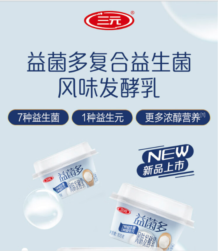 三元 益菌多复合益生菌原味杯装风味发酵乳 酸牛奶