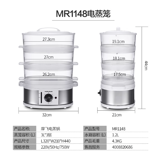 摩飞电蒸锅多功能家用多层蒸汽锅3层大容量早餐机电蒸笼蒸菜器