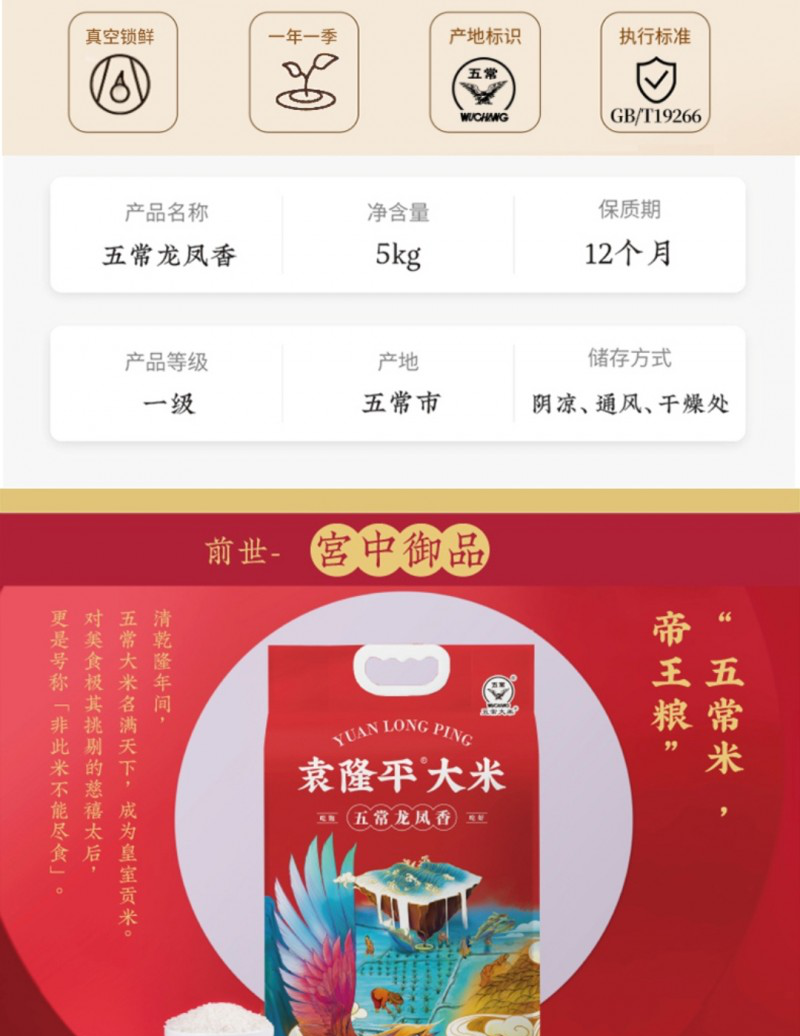 袁隆平大米五常龙凤香米稻花香2号5kg/袋