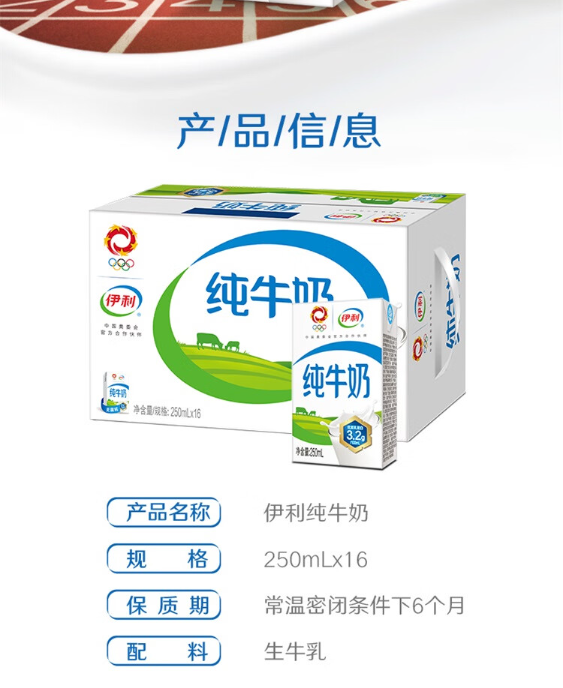 伊利 无菌砖全脂牛奶 250ml*16盒 整箱装
