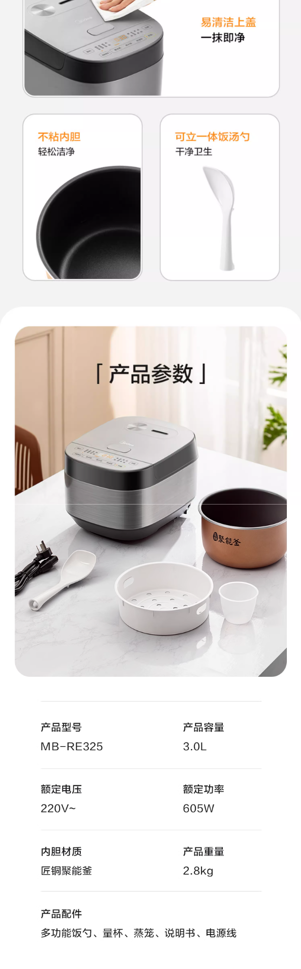 美的电饭煲3L家用多功能电饭锅智能预约煮饭锅不粘4人官方正品