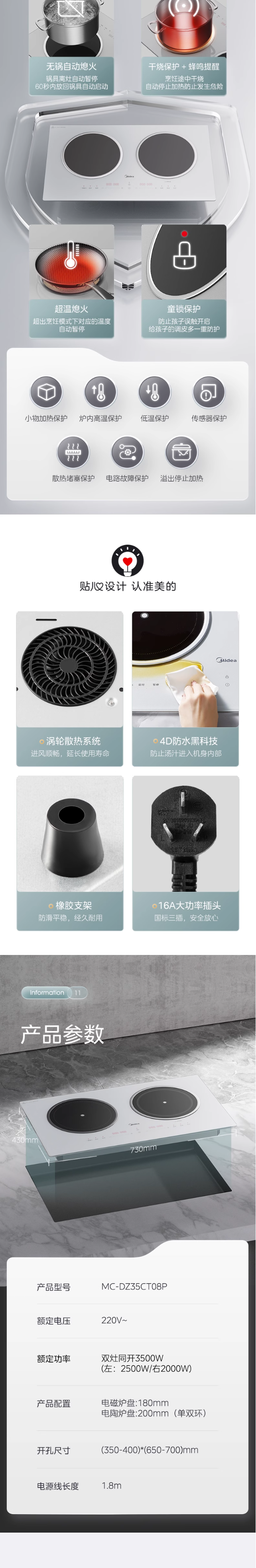 美的铂钻电磁炉电陶炉双灶嵌入式家用炒菜3500w大功率电磁灶台式